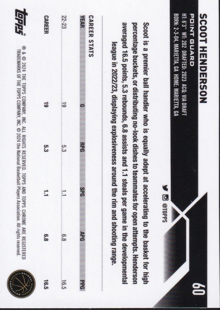 2023-24 Topps Chrome Basketball (NBA) #60 Scoot Henderson Base (RC) Rookie Card