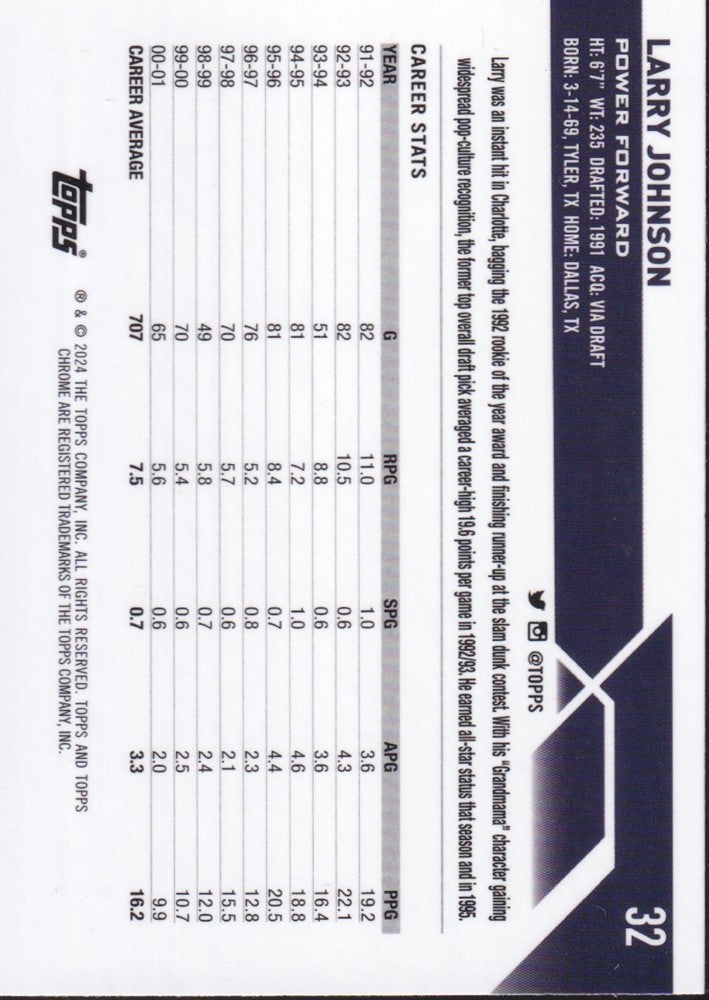 2023-24 Topps Chrome (NBA) Blue Basketball Refractors Card #32-Larry Johnson