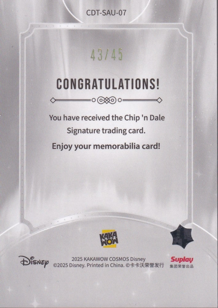 Description: 2025 Kakawow Cosmos Disney Signatures COSMOS Aurora #CDT-SA-U07 Chip 'n Dale 43/45