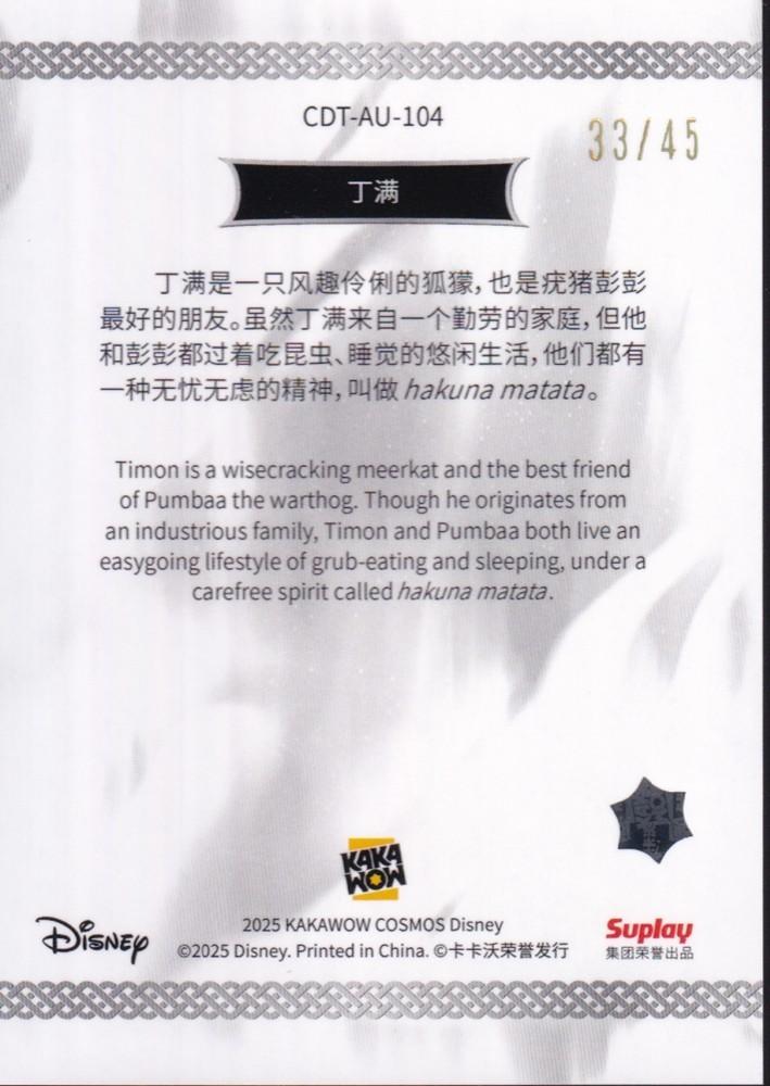 Description: 2025 Kakawow Cosmos Disney COSMOS Aurora #CDT-AU-104 Timon 33/45